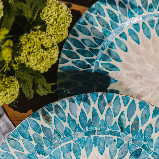 Aqua Mother of Pearl Charger Plates (Set of Two)