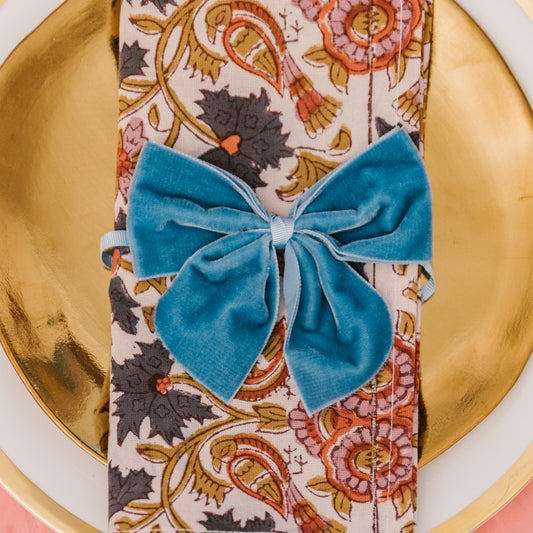 Kingfisher Blue Velvet Napkin Bows (Set of Two)